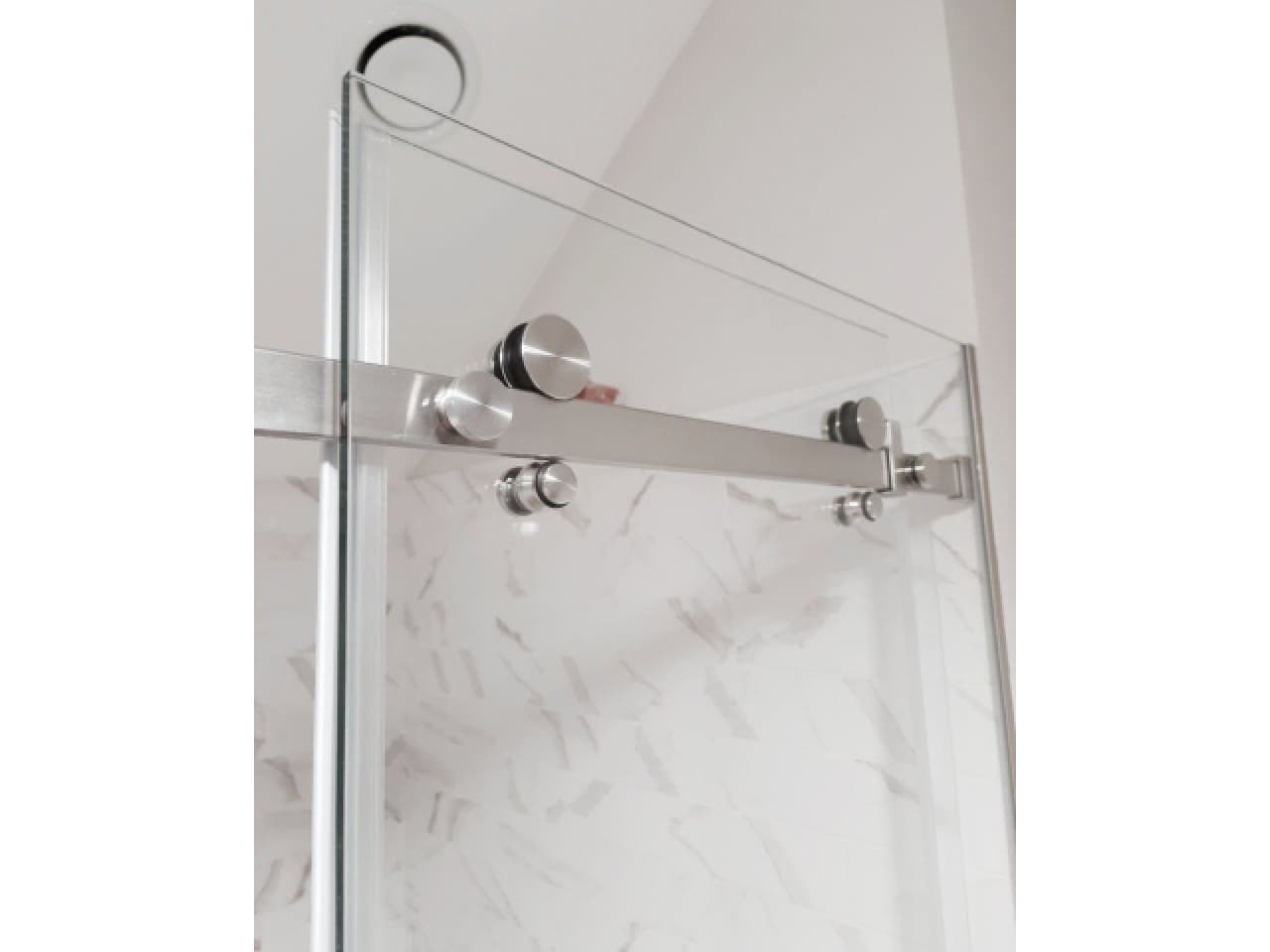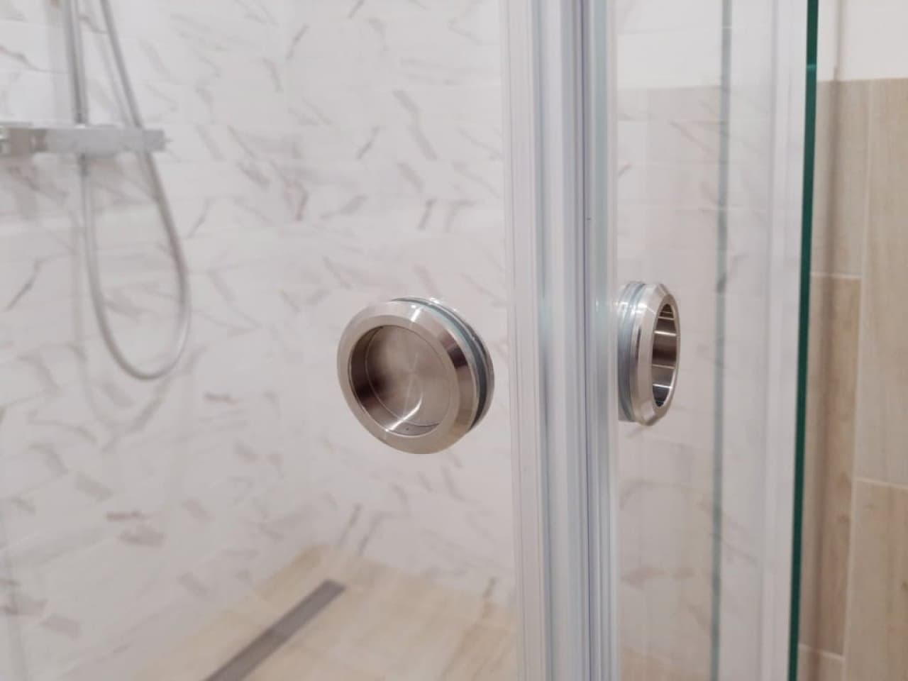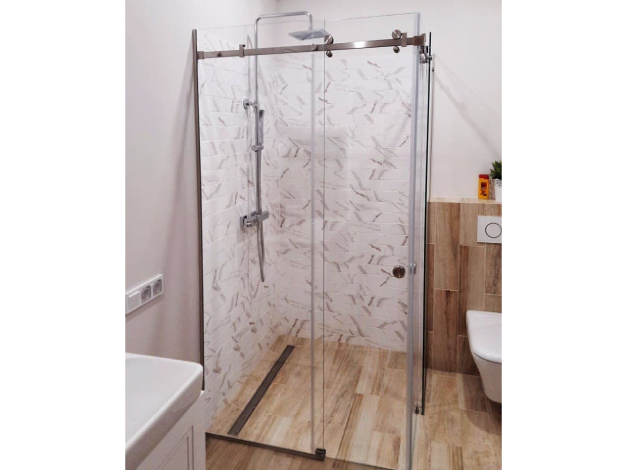 Угловая перегородка для душа из осветленного стекла с сатиновым цветом профиля — хорошее решение для создания уютной и стильной атмосферы в вашей ванной комнате. Закаленное восьми миллиметровое стекло обеспечивает надежность и безопасность, его также удобно мыть. Раздвижная дверь позволяет экономно использовать пространство. Производитель фурнитуры — Mitrade — обеспечит надежное соединение элементов конструкции. Уголок для душа — это практичное решение для вашей ванной комнаты.