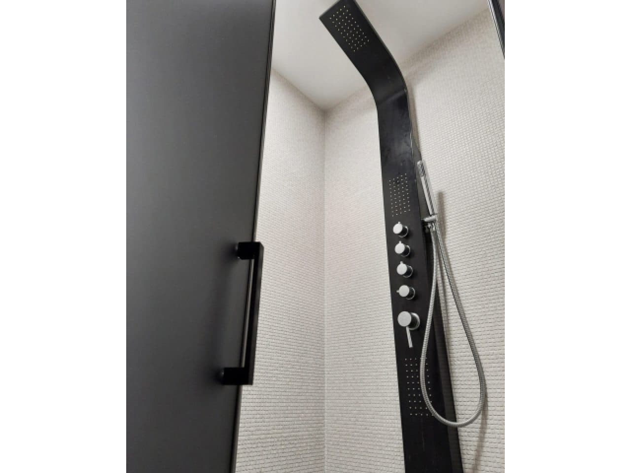 1 отзыв на Матовая дверь в душевую нишу с черным профилем