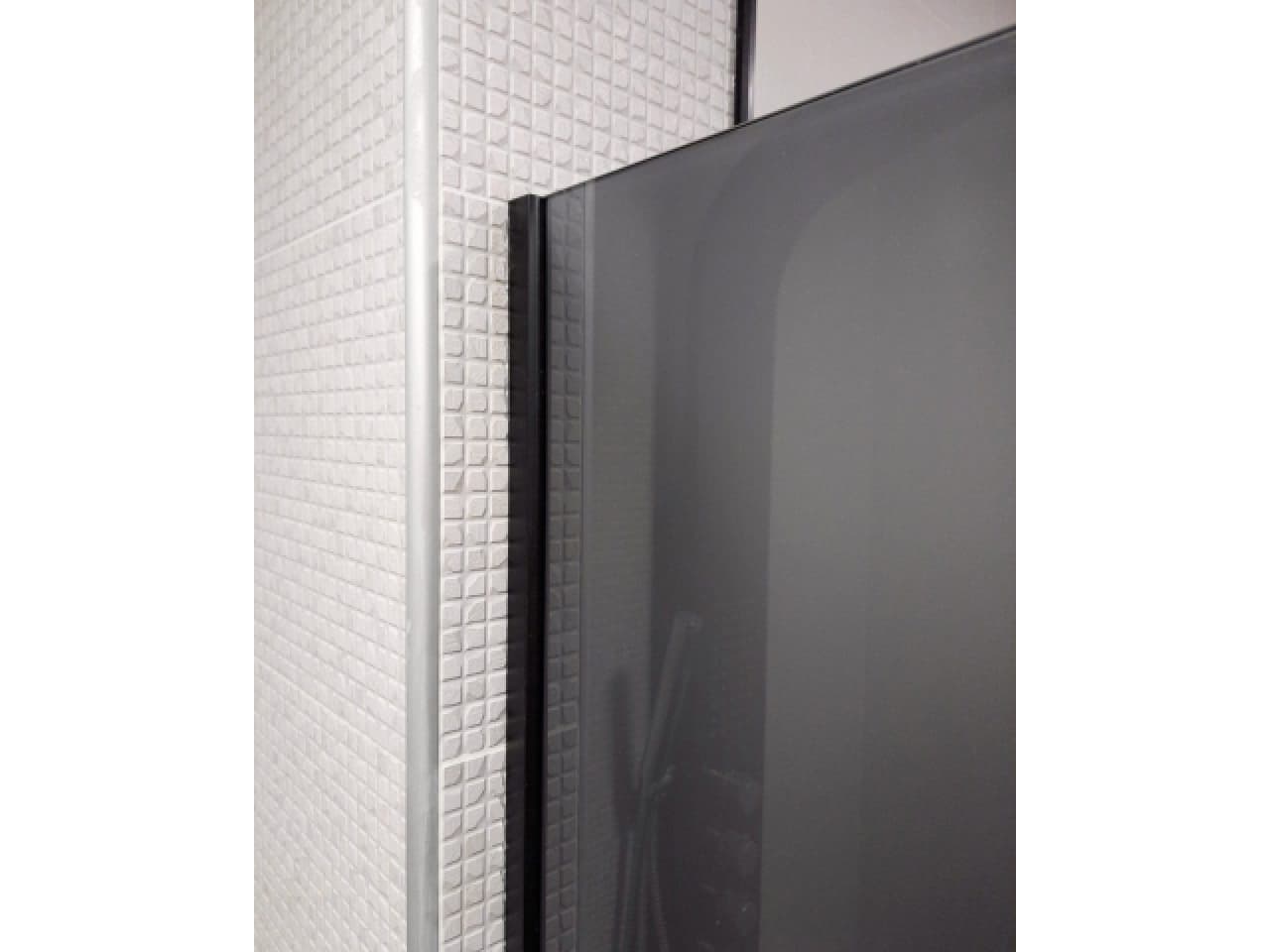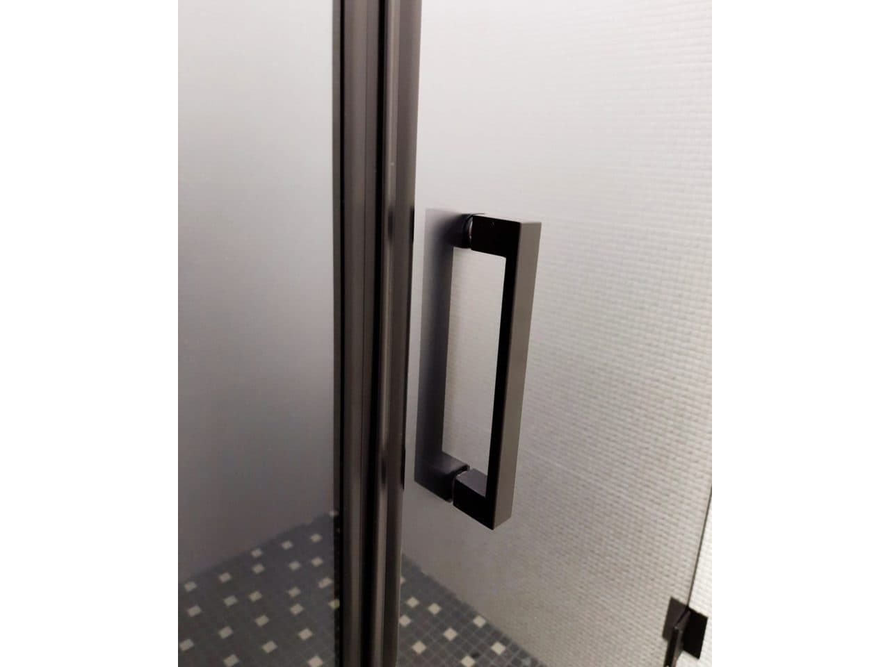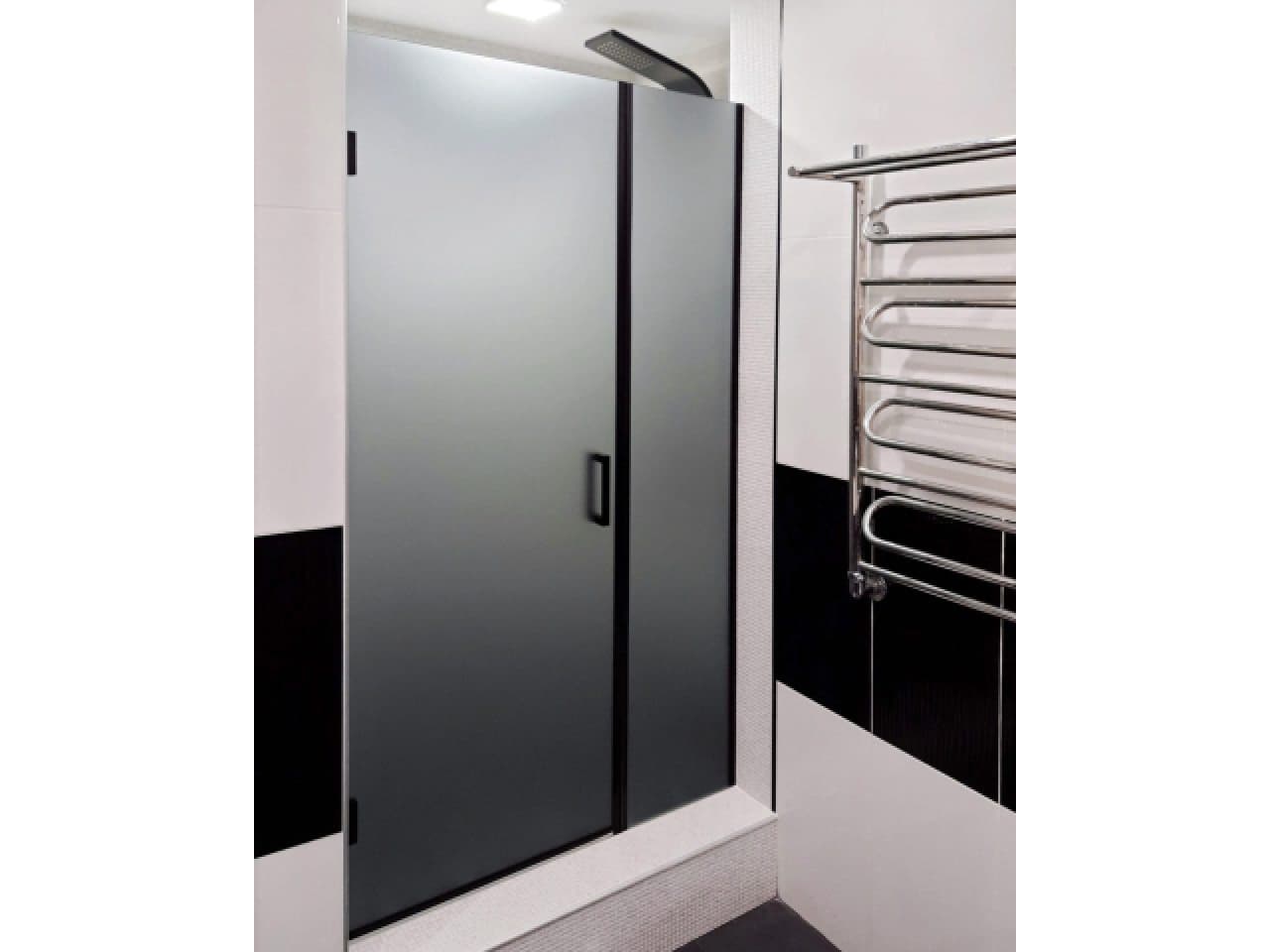Главная » Каталог » Изготовление и монтаж душевых кабин » Двери » Распашные » Матовая дверь в душевую нишу с черным профилем