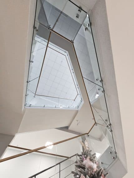 Главная » Каталог » Стеклянные ограждения » Лестничные » Стеклянное ограждение лестницы каркасное