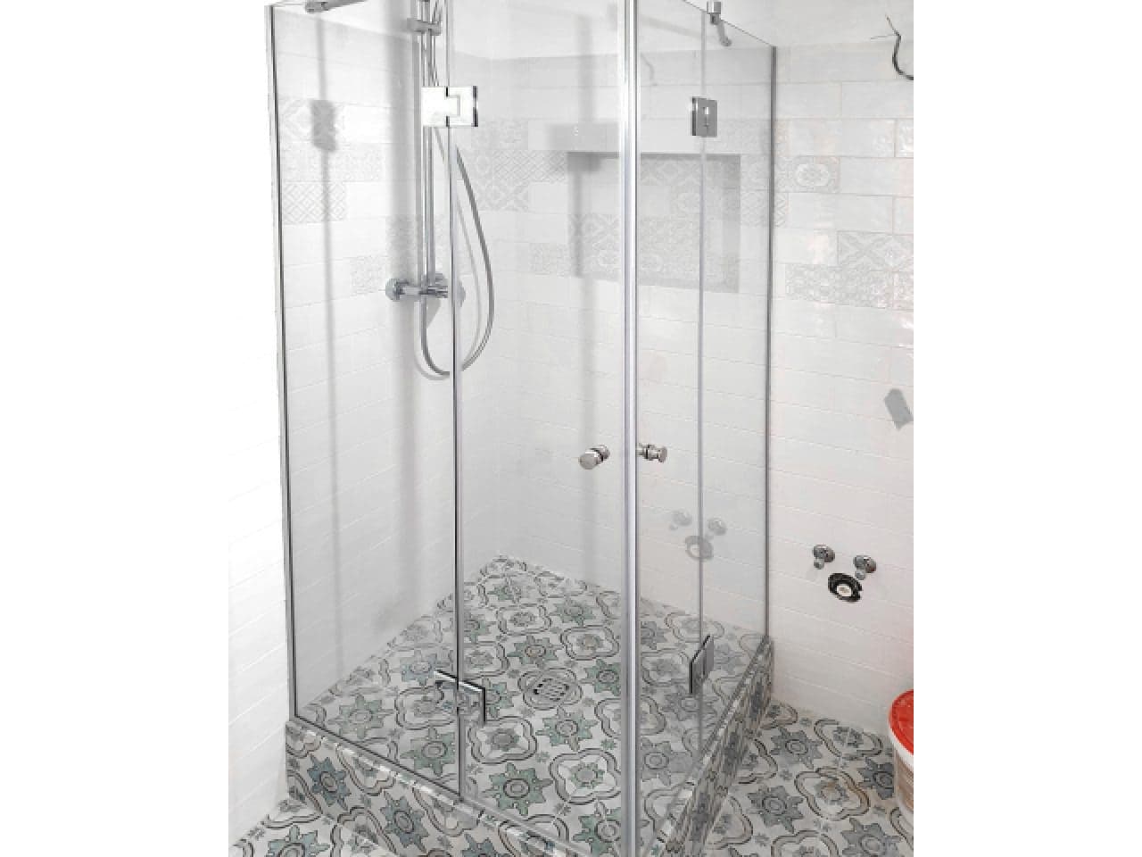 Главная » Каталог » Изготовление и монтаж душевых кабин » Уголки » Распашной душевой уголок из закаленного стекла