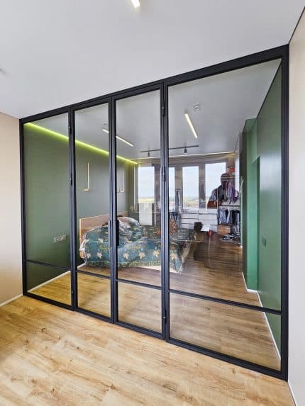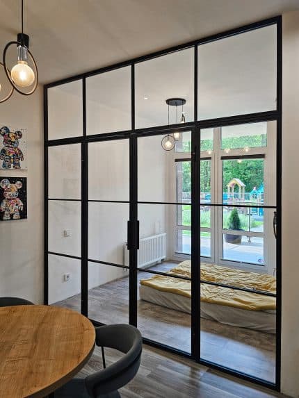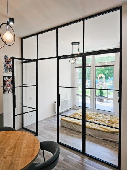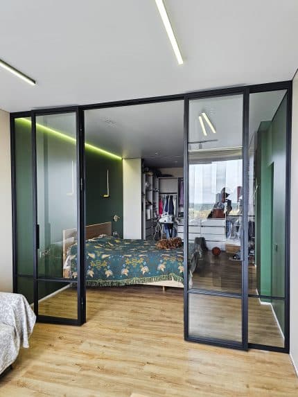 Раздвигающаяся перегородка комнат в стиле loft стеклянная
