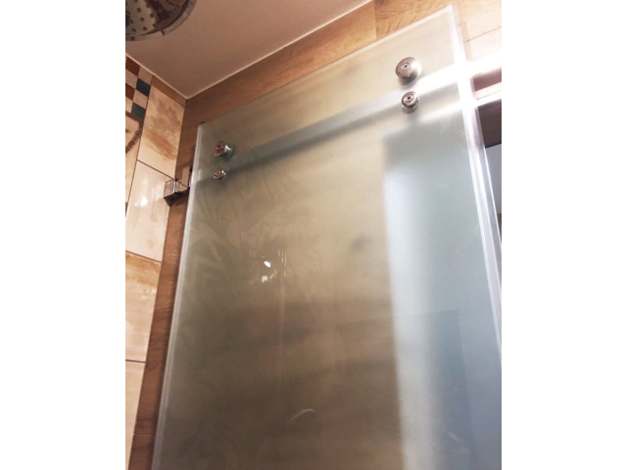 Главная » Каталог » Изготовление и монтаж душевых кабин » Двери » Раздвижные » Раздвижная дверь в душевую матового цвета профиля
