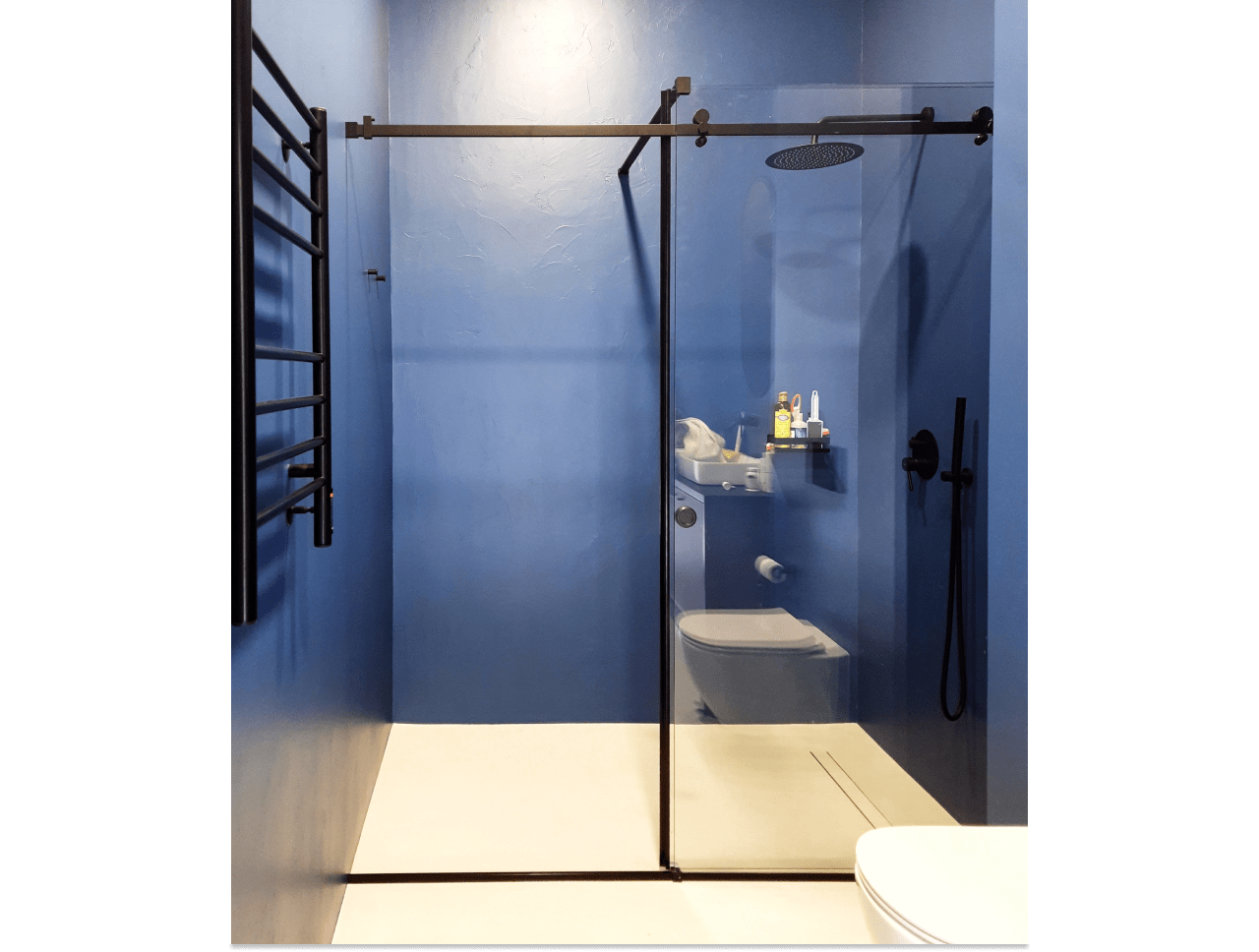 Раздвижная перегородка душевая с черным профилем