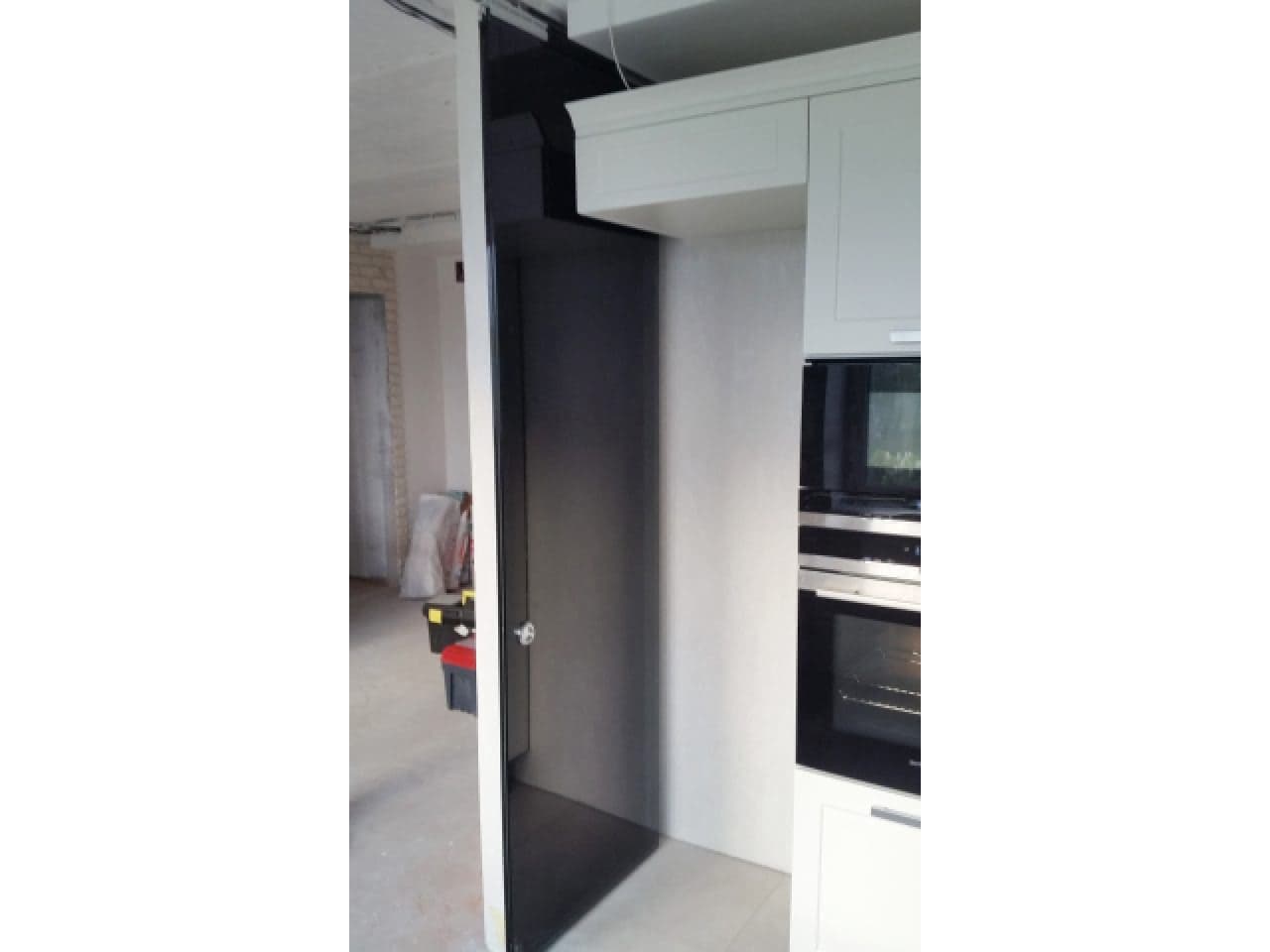 Раздвижная телескопическая перегородка из стекла — это современное и эффективное решение для разделения кухни и жилой зоны. Она выполнена из закаленного графитового стекла толщиной 8 мм, что придает ей прочность и долговечность. Система раздвижения Hafele обеспечивает плавное и бесшумное перемещение перегородки по направляющим. Телескопическая конструкция позволяет регулировать ширину перегородки в зависимости от потребностей и желаемого разделения пространства. Перегородка из стекла не только функциональна, но и эстетична. Она добавляет в интерьер легкости и простоты, а также позволяет сохранить пространство и свет в помещении. Таким образом, раздвижная телескопическая перегородка из стекла — это удобное, практичное и красивое решение для разделения кухни и жилой зоны. Она обеспечивает функциональность и эстетичность, придавая вашему интерьеру завершенный вид.