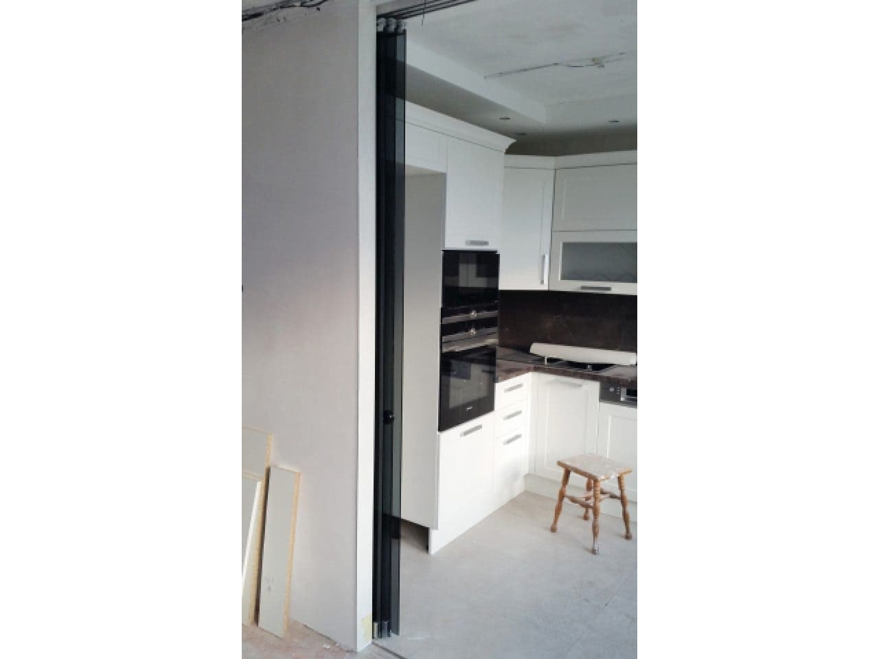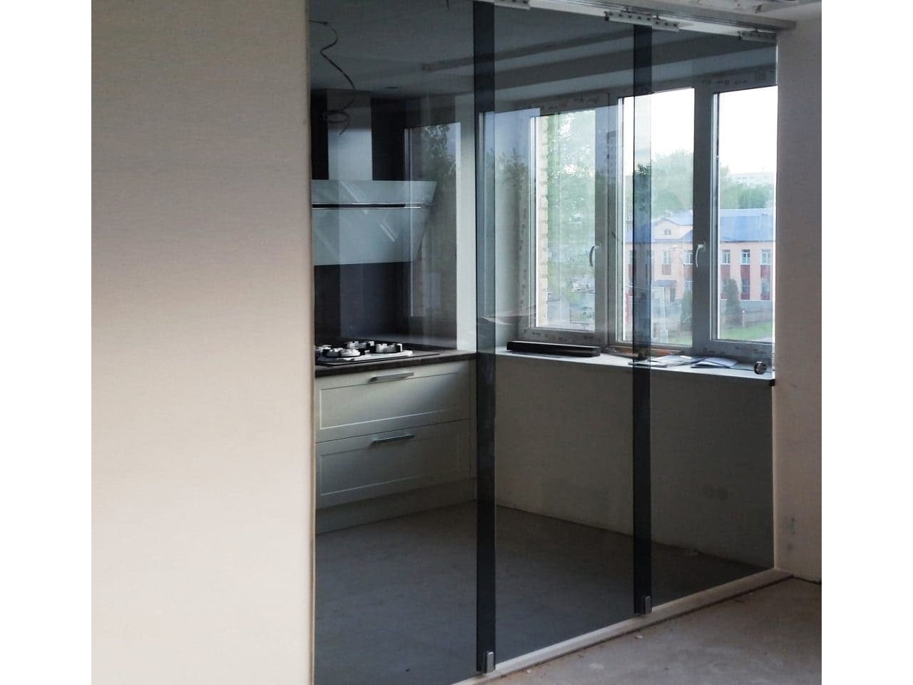 Главная » Каталог » Стеклянные перегородки » Межкомнатные » Раздвижная телескопическая перегородка из стекла