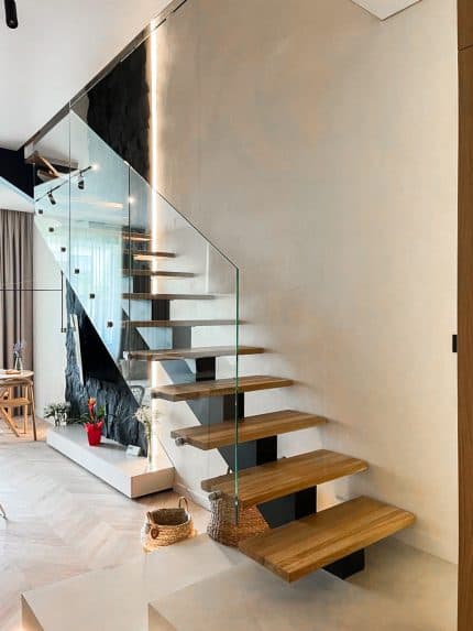 Лестничное ограждение из закалённого прозрачного стекла толщиной 10 мм на торцевых точечных держателях – это современное и эстетичное решение для любого интерьера. Оно позволяет создать впечатление лёгкости и простора, сохраняя при этом безопасность и функциональность. Закалённое стекло толщиной 10 мм обеспечивает высокую прочность и устойчивость к механическим нагрузкам, что делает его безопасным в использовании. Кроме того, такое стекло имеет высокую степень прозрачности, что позволяет максимально использовать естественный свет в помещении. Для крепления стекла были использованы торцевые точечные держатели. Они обеспечивают надежное крепление стекла к перилам и лестничным маршам, не занимая лишнего места и не загромождая пространство. Такое лестничное ограждение из закалённого прозрачного стекла толщиной 10 мм на торцевых точечных держателях является элегантным и функциональным решением для любого интерьера. Оно подчеркивает современный дизайн помещения и создаёт комфортную и безопасную атмосферу для жильцов и гостей.