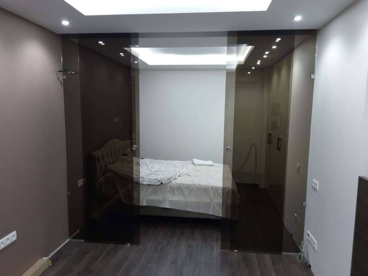 Главная » Каталог » Стеклянные перегородки » Раздвижные » Тонированная перегородка комнат из закаленного стекла