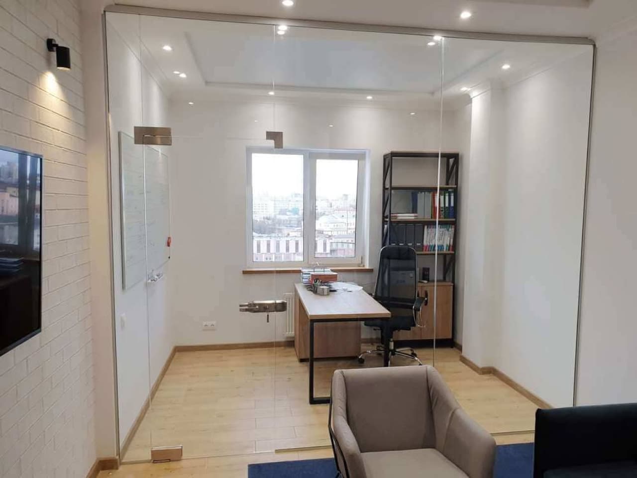 Прозрачная цельностеклянная перегородка в офис с дверью