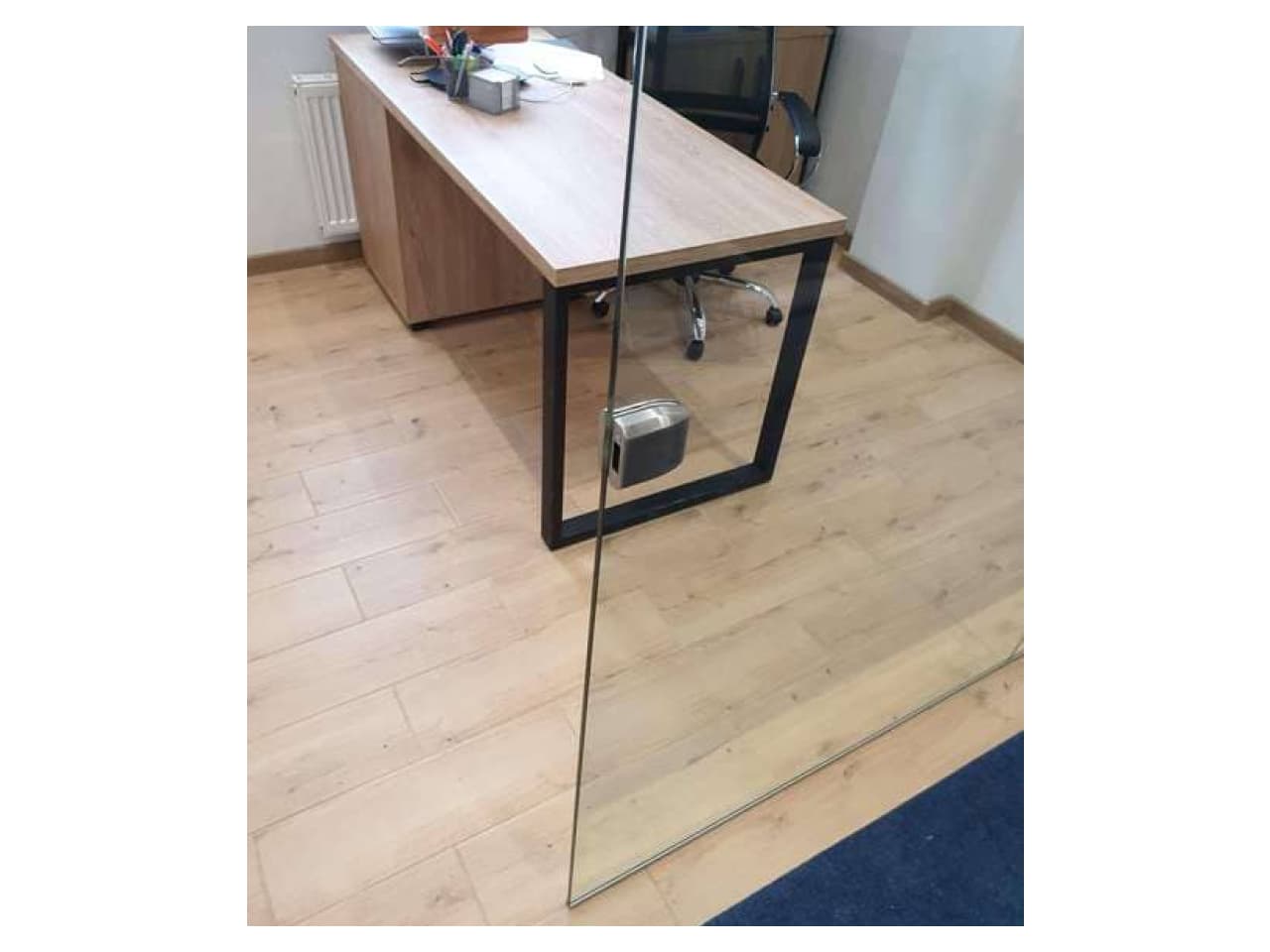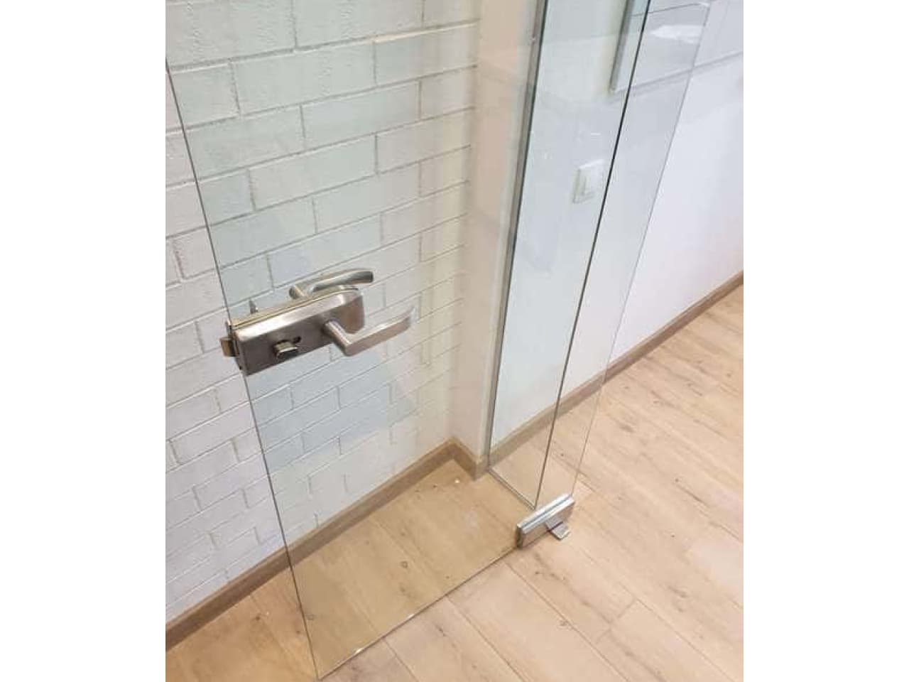Прозрачная цельностеклянная перегородка в офис с дверью — это отличное решение для зонирования помещения. Она выполнена из прочного и надежного материала — 10 мм прозрачного закаленного стекла, которое обеспечивает надежность и безопасность при использовании. Дверь оснащена доводчиком Hag, который позволяет мягко и плавно закрывать дверь, а также защищает от ее повреждения. Замок с нажимной ручкой Hag обеспечивает надежную фиксацию двери и защиту от несанкционированного доступа. Стеклянная прозрачная перегородка с маятниковой дверью легко устанавливается и монтируется на стену. Она позволяет создать уютную и комфортную обстановку в помещении, а также защищает от шума и создает ощущение простора и света. Стеклянная прозрачная перегородка с маятниковой дверью — это практичное и красивое решение для вашего помещения, которое обеспечивает функциональность и эстетичность. Она позволяет использовать пространство максимально эффективно и создает ощущение легкости и прозрачности.